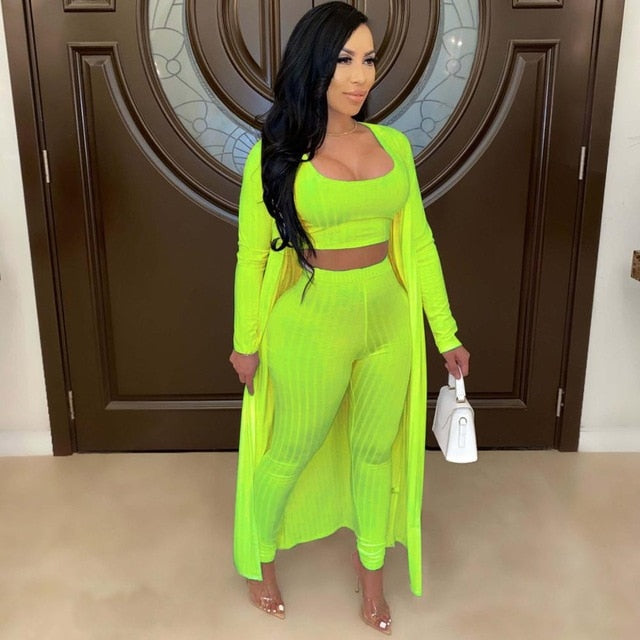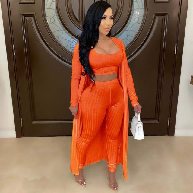 Women Three Piece Top Pant Cardigan Elastic Waist Set