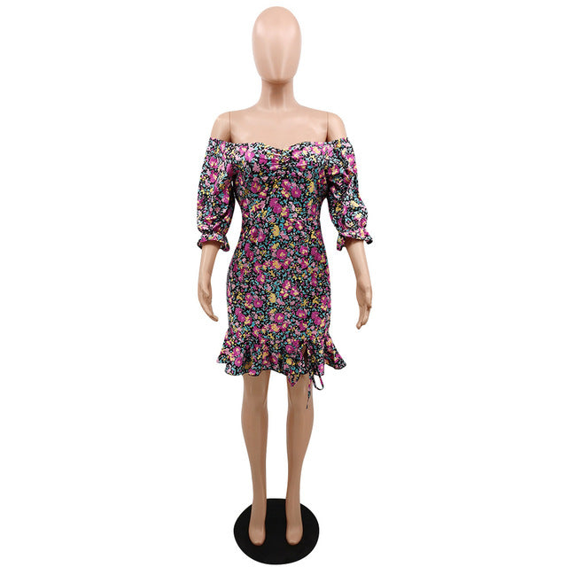 Women Sexy Plus Size Floral Bodycon Mini Elegant Off Shoulder Dress