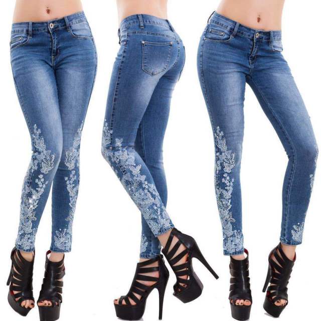 Women Hot Diamond Cutout Skinny Jeans