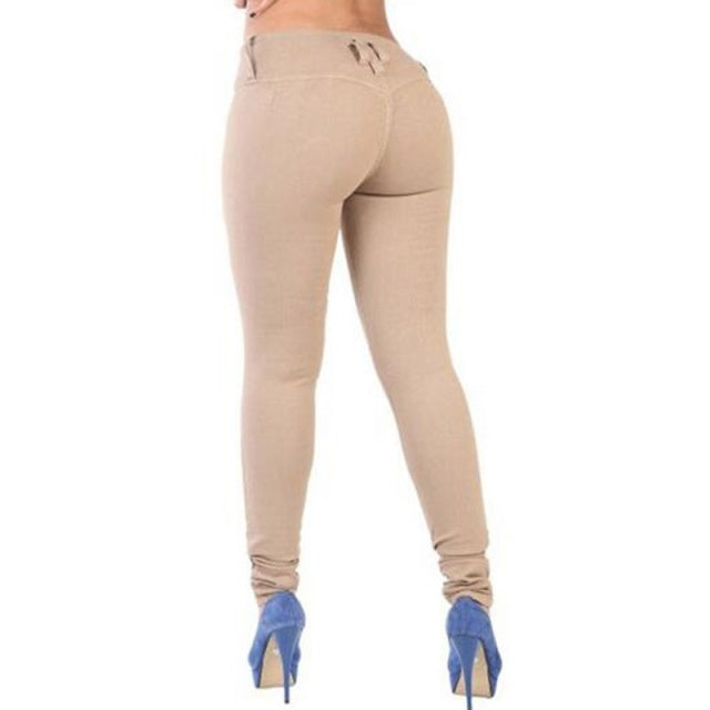 New Mid High Waist Denim Solid Sexy Slim Jeans