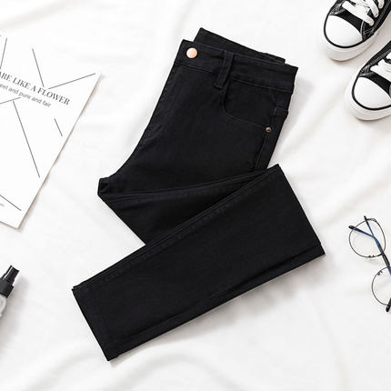 Women High Waist Skinny New Fashion Elastic Thin Gray Solid Denim Pants