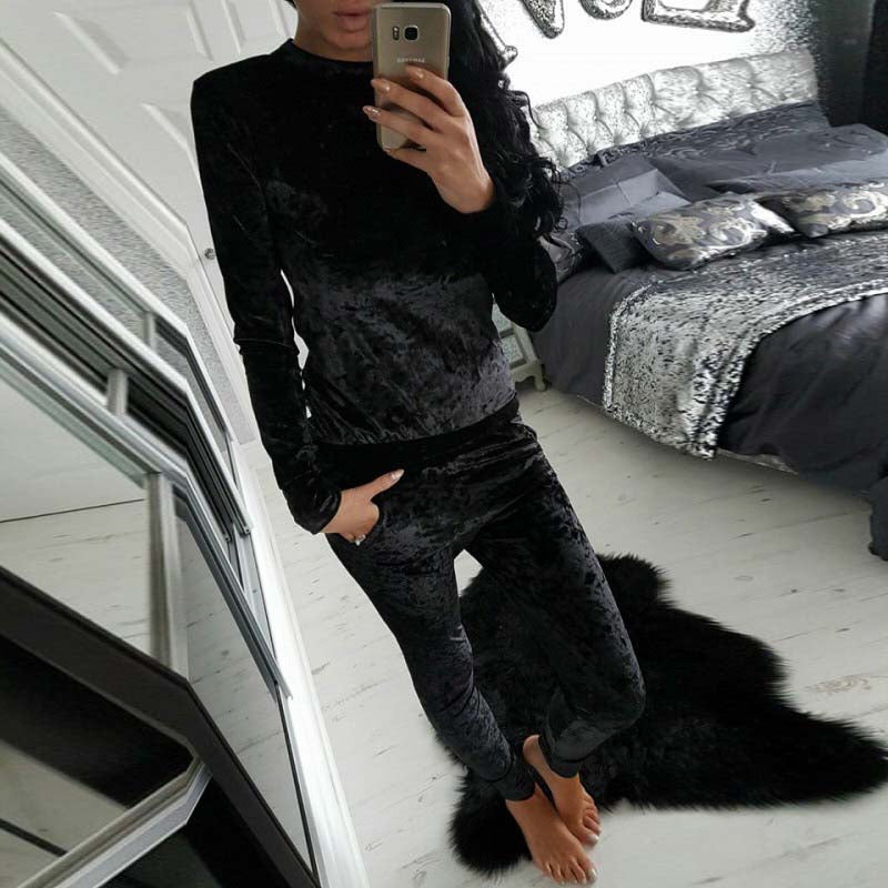 Women Velvet Two Piece Winter Velour Tracksuit
